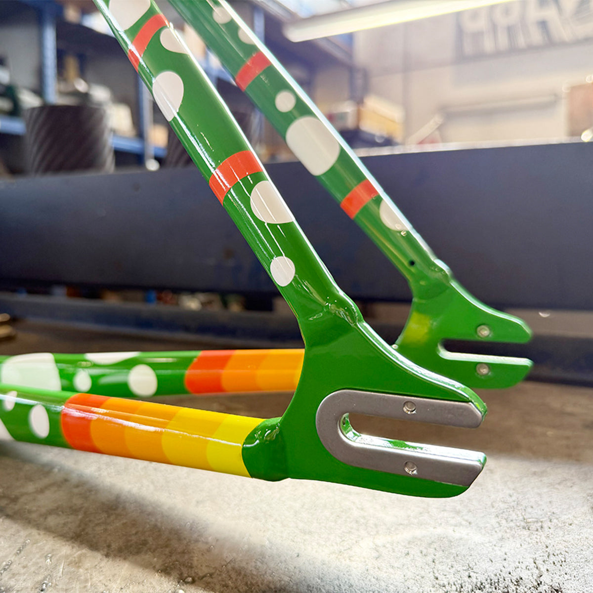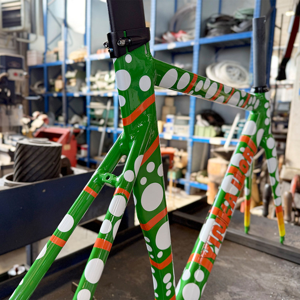 - Geometry: Pure track reactive geometry with 377 mm chainstays and a negative sloping top tube