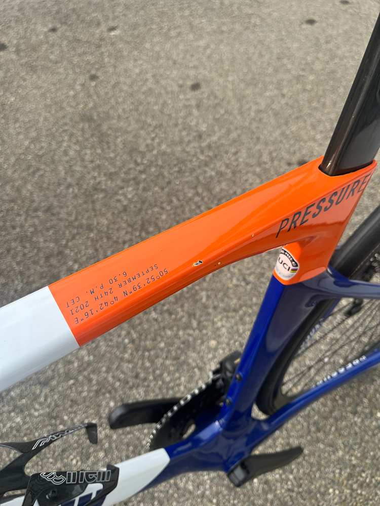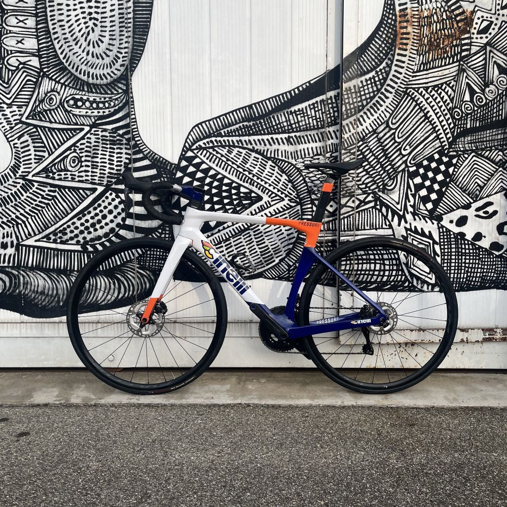 Born to race, Pressure is the pinnacle of Cinelli’s road bike design language. Made from a high modulus T800 carbon fiber with proprietary lay-up tested and developed in conjunction with Italy’s premier development team, Colpack Ballan CSB over a period of two years, the Pressure synthesizes into a contemporary Milanese design language the performance cyclist’s need for aerodynamic tube profiles, integrated wiring and an aggressive road feel that pays homage to our historical Italian racing DNA… Various prestigious professional victories include the 2021 UCI U23 Mens World Championships with Filippo Baroncini.