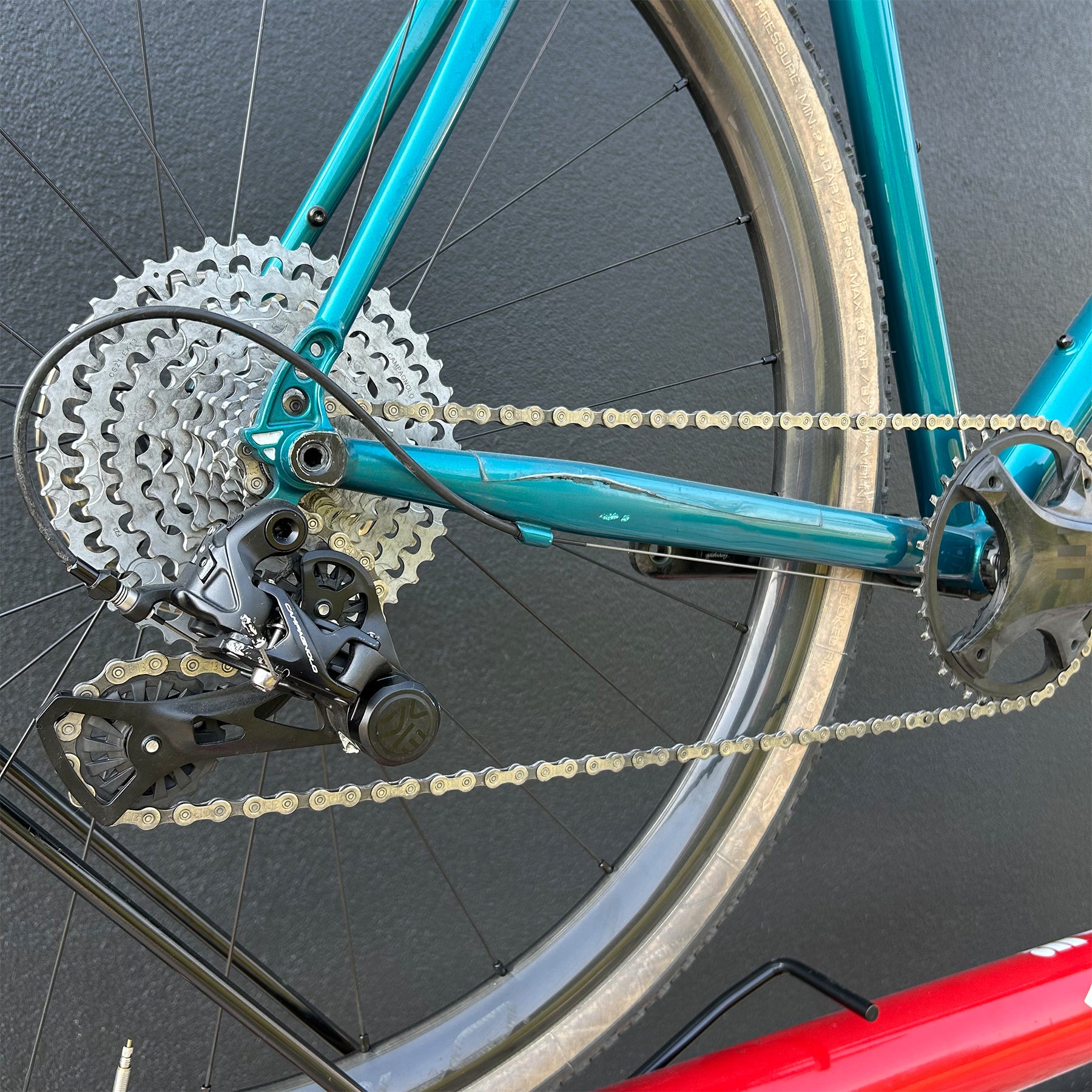 - Verniche leggermente scheggiata su reggisella, forcella e tubo superiore